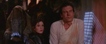 Jabba se zatím baví při koncertu, který vede Si Snootles a Max Rebo. Jabba není okouzlen jeho otrokyní Oola, která je k němu přivázána řeteze a tak jí nechá vhodit do jámy s příšerou rancor. Potom do paláce za Jabbou přijde princezna Leia Organa s Chewbaccou. Leia je přestrojená na za nájemní lovkyni Boushh a dělá, že Chewbacca je její zajatec. Jabba řekne, že jí dá za odměnu 25 000, ale Leia chce nejméně 50 000 To Jabba odmítá vyplatit a rozzlobí se. Leia však ukáže, že má tepelný detonátor. Pak se tedy dohodnou na 35 000 a Chewbacca je odveden do vězení. Lando Carlissian je převlečen za jednoho z Jabbových stráží. V noci se Leia tiše připlíží k Hanovi, který je zmražen do karbonitu a rozmrazí ho. Han má po hybernaci dočasně ztracený zrak. Leia mu tedy řekne kde je a políbí ho. Potom se se, ale ozve Jabbův smích a Han je odveden do vězení. Leiu si Jabba nechá přivázat na řetěz k sobě. Han se ve vězení setká s Chewbaccou.