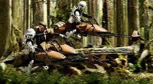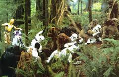 Han, Leia, Chewbacca, Luke, C-3PO a povstalečtí vojáci se tiše plížili lesem Endoru a narazila na stormtrooepry. Han řekl, že se o ně postará. Jednoho vojáka se mu podařilo zneškodnit, ale další dva jeli na svých speederech pro posili. Leia s Lukem je jiném speedru jeli pronásledovat a Lukovi se podařilo jednoho vojáka zneškodnit a vlézt si na jeho speeder. Potom se ale do boje přidali další dva vojáci. Luke se o ně jel postarat. Jednoho zničil. Mezitím Leia zápasila na speedrech s jiným stromtrooperem a ten jí sestřelil na zem. Sám potom, ale narazil do stromu a zemřel. Luke posledního vojáka zničil světelným mečem. Luke se potom vrátil k Hanovi, ale zjistil, že tam Leia není, a tak se jí s Hanem, Chewbaccou, C-3PO a R2-D2 vypravil do Endorských lesů hledat. Leia se zatím probere a potká malého domorodého obyvatele Endoru ewoka jménem Warrick. Ten se jí zprvu bojí, ale nakonec k ní získá důvěru. Oba se potom musí bránit střelbě imperiálních stromtrooperů. Leiu jeden voják zatkne a chce jí odvést. Vtom mu však do nohy strčí ewok Warrick, voják se sehne a Leia ho praští a zneškodní. Dalšího vojáka, který letěl na speedru pro posily Leia sestřelila. Potom s ewokem odejde pryč.